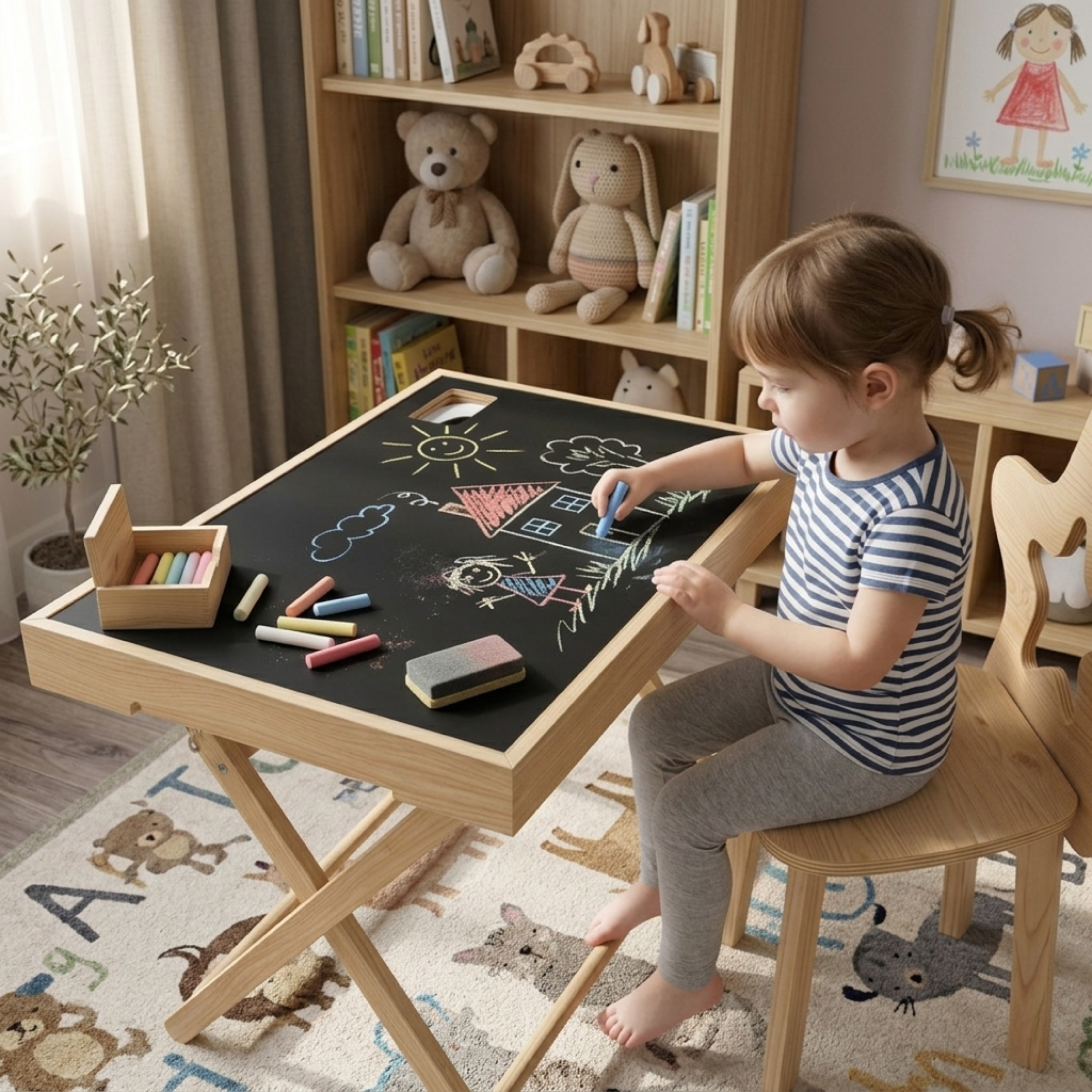 From sensory play to drawing and LEGO building, this table supports independent exploration while keeping playtime organized and joyful.